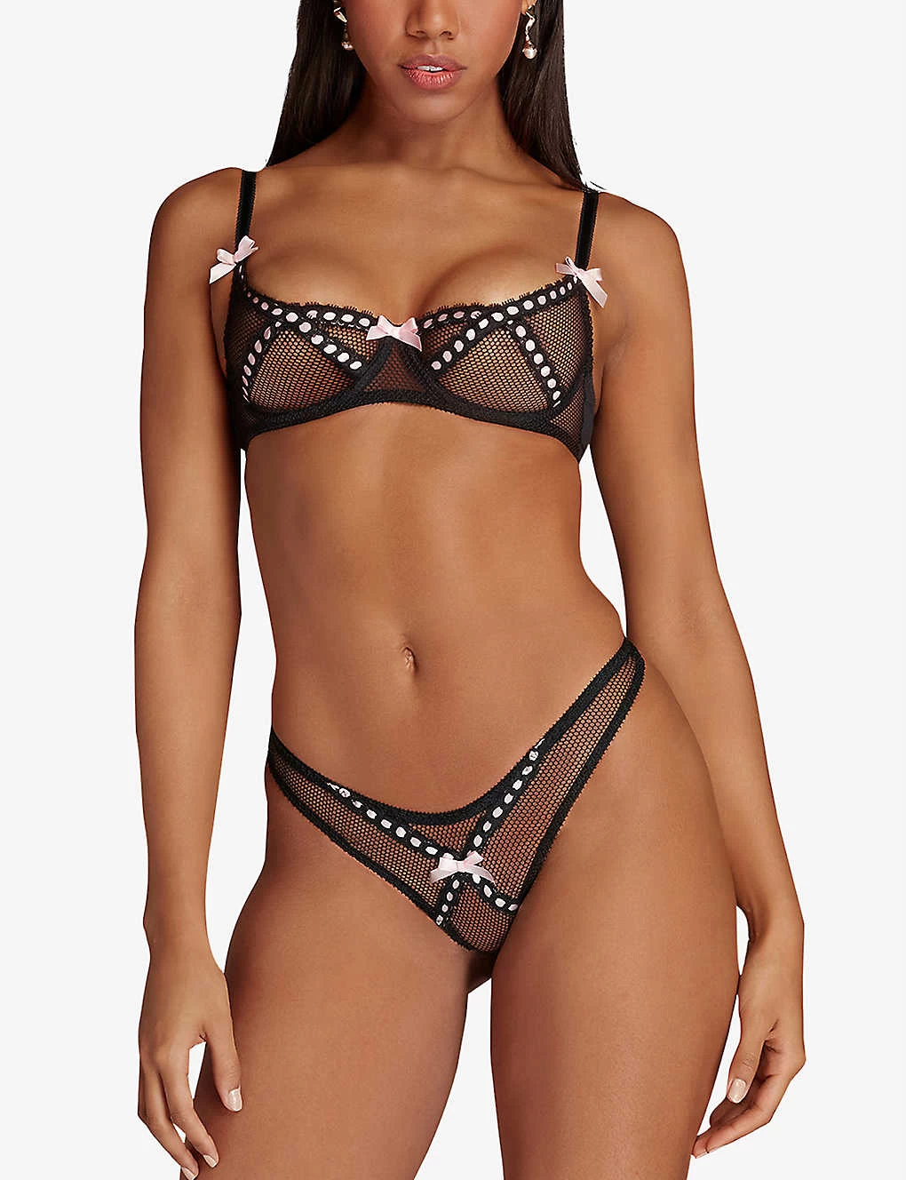 AGENT PROVOCATEUR Rozey Bow-detail Mesh Thong