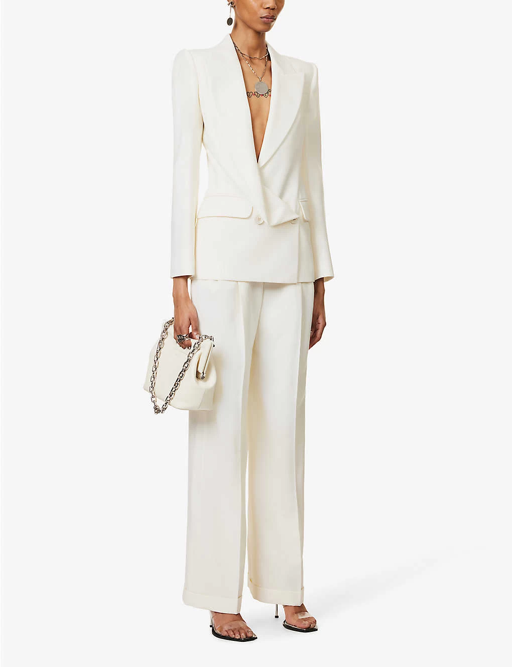 Be the first to review “Alexander McQueen Pleated Folded-hem Wide-leg Mid-rise Wool Trousers” Cancel reply