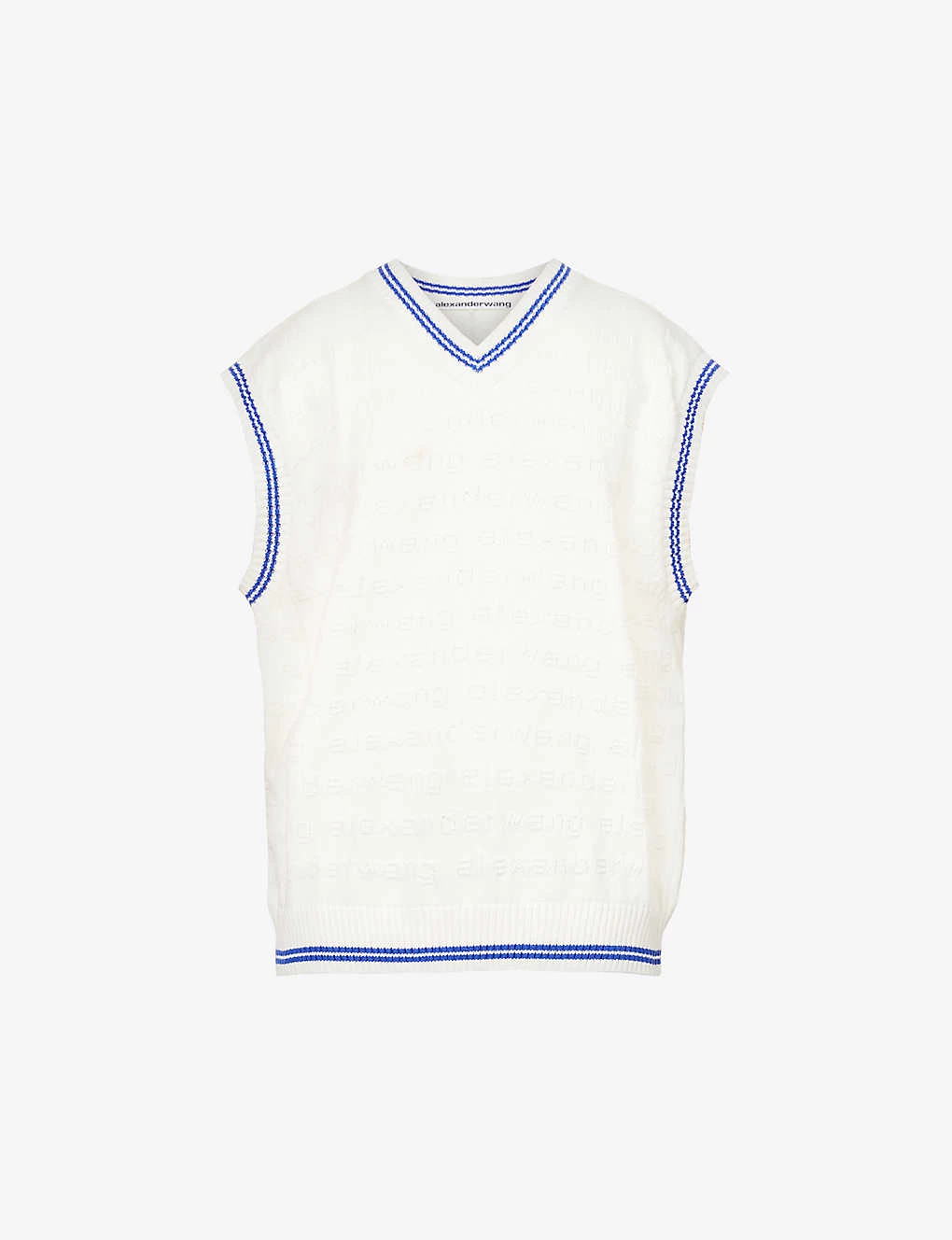 ALEXANDER WANG Logo-embossed V-neck Cotton Knitted Vest