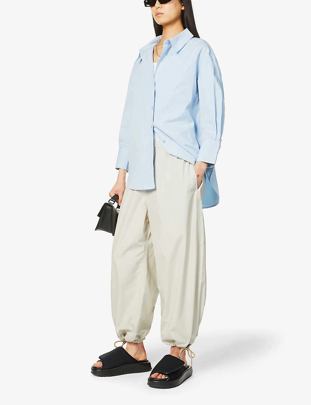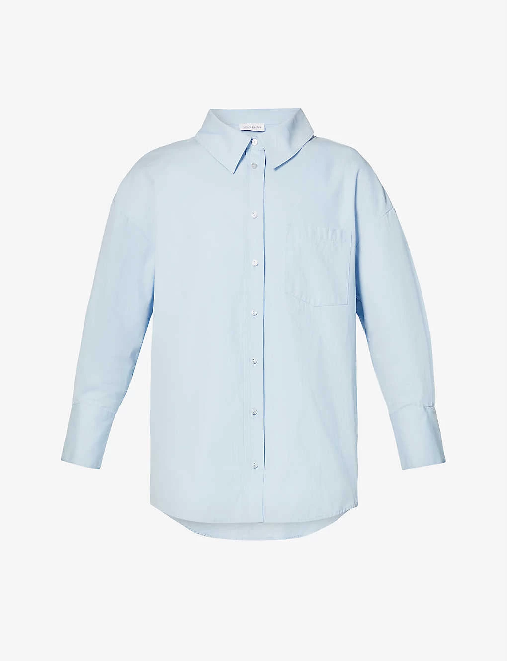 - Relaxed fit, collar, three-quarter-length sleeves, knife pleats at sleeves, buttoned cuffs, branded buttons, patch pocket at chest, box pleat at back, dropped hem at back
