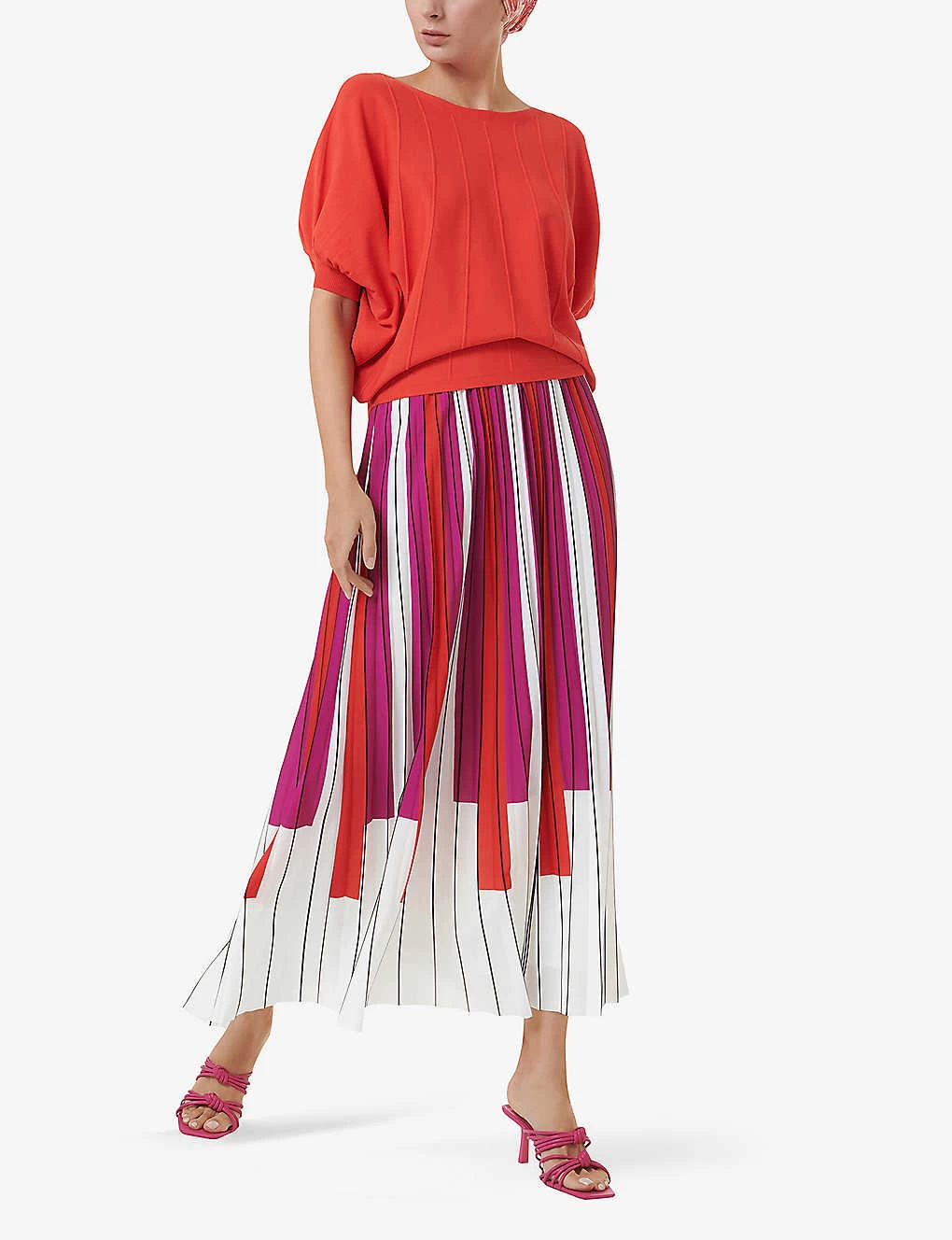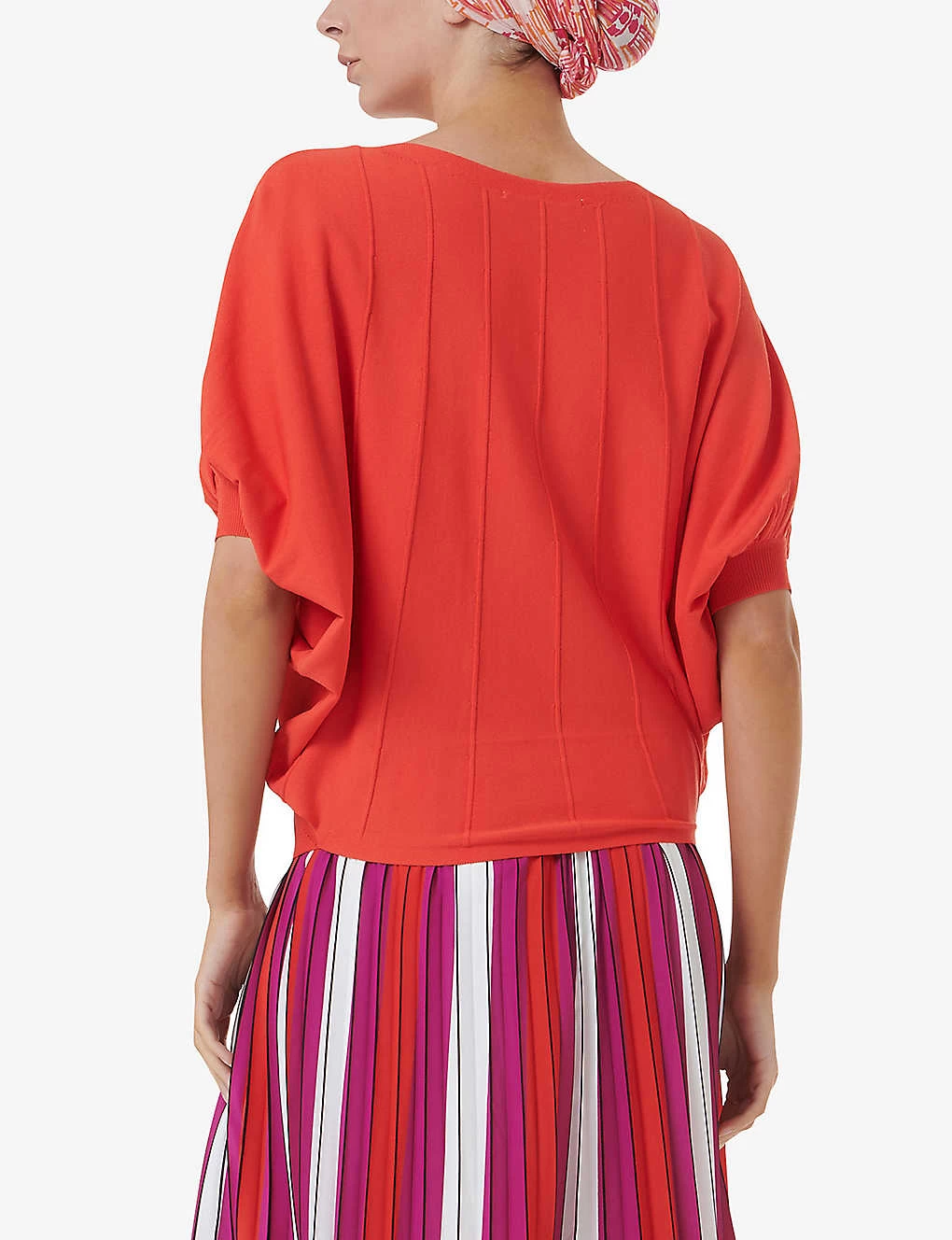 - Relaxed fit, round neck, short batwing sleeves, fitted hem, knitted construction