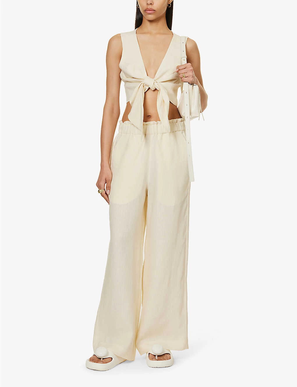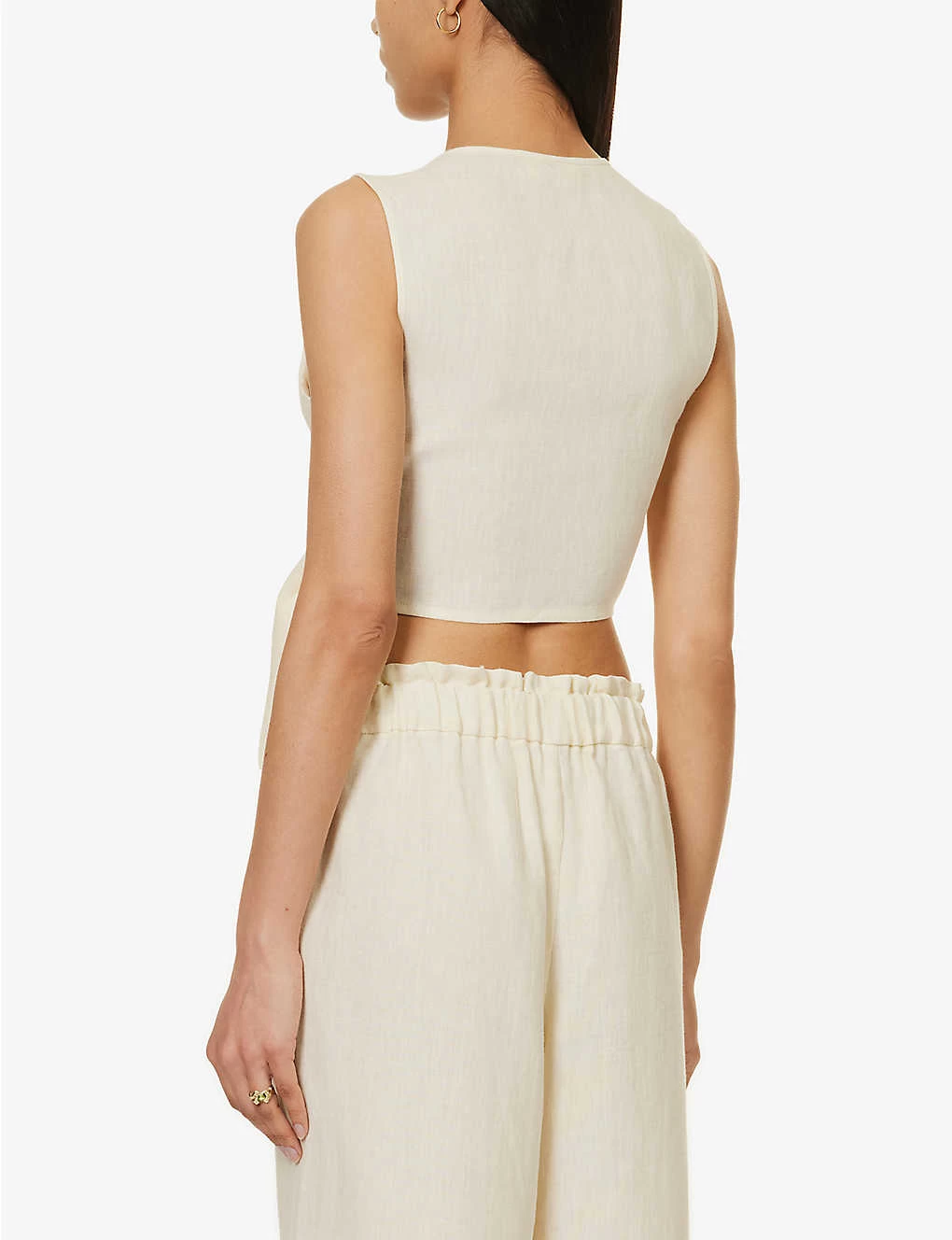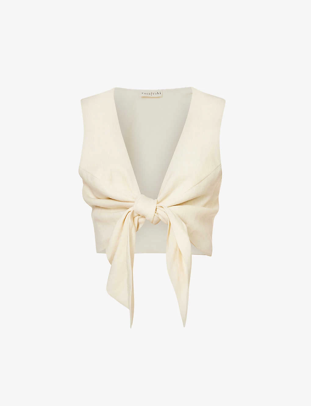- Relaxed fit, sleeveless, darts at front, self-tie fastening