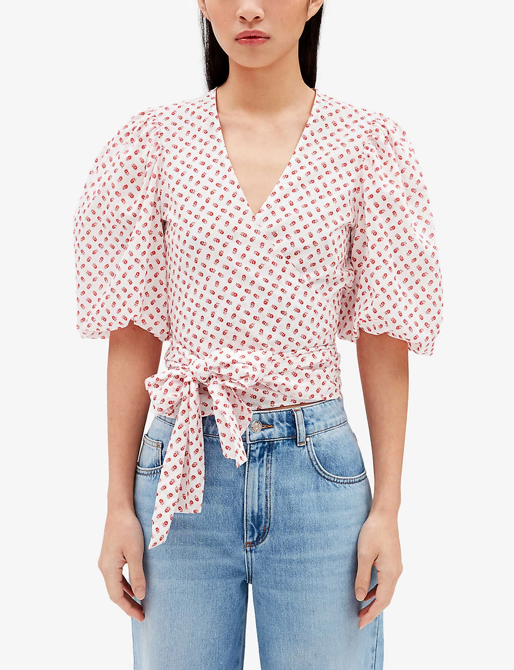 CLAUDIE PIERLOT Bambino Floral-print Wrap-around Cotton Blouse