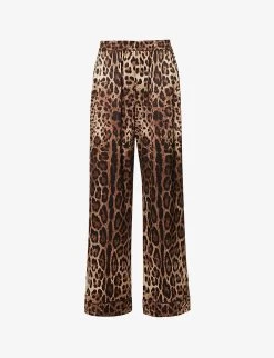 Dolce & Gabbana Animal-print Wide-leg Mid-rise Stretch-silk Trousers