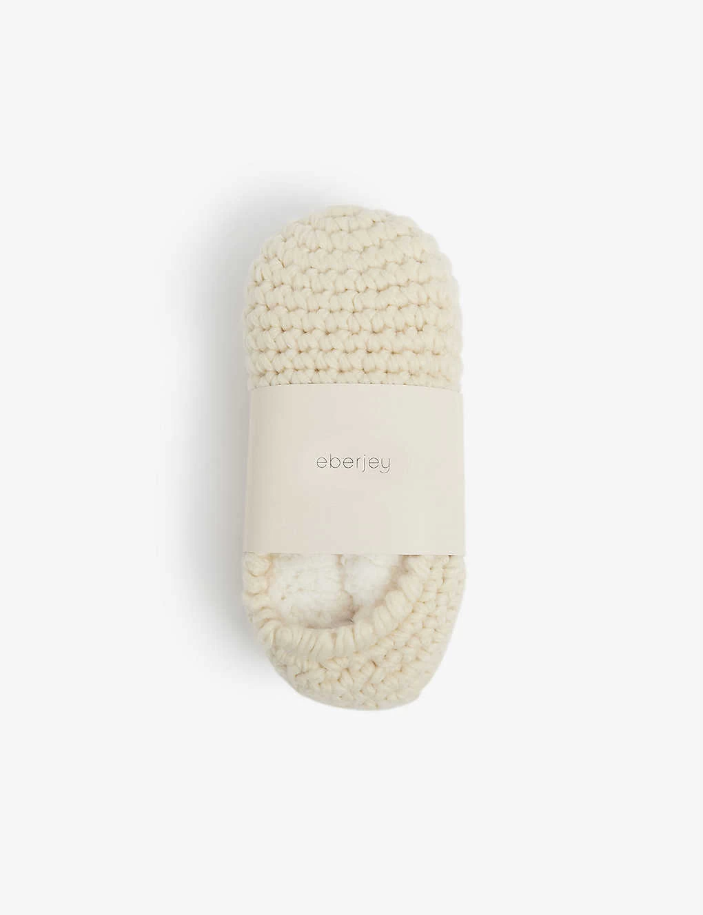 - Single pair, closed round toe, ankle height, plush-lined, thick knit, grips on sole
