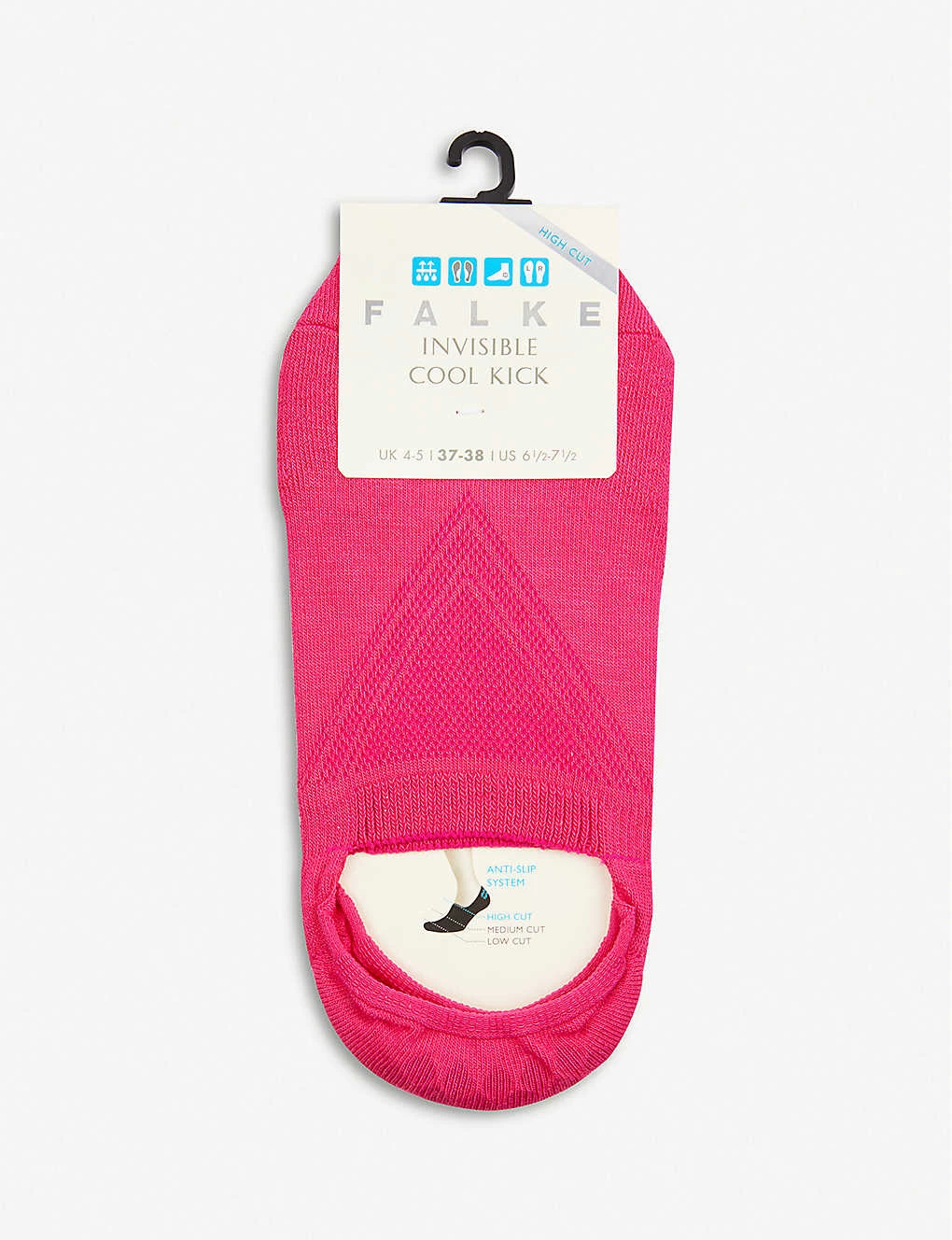 - High moisture wicking, ultra-light cushioned sole, anti-slip system, patented anatomic FALKE fit