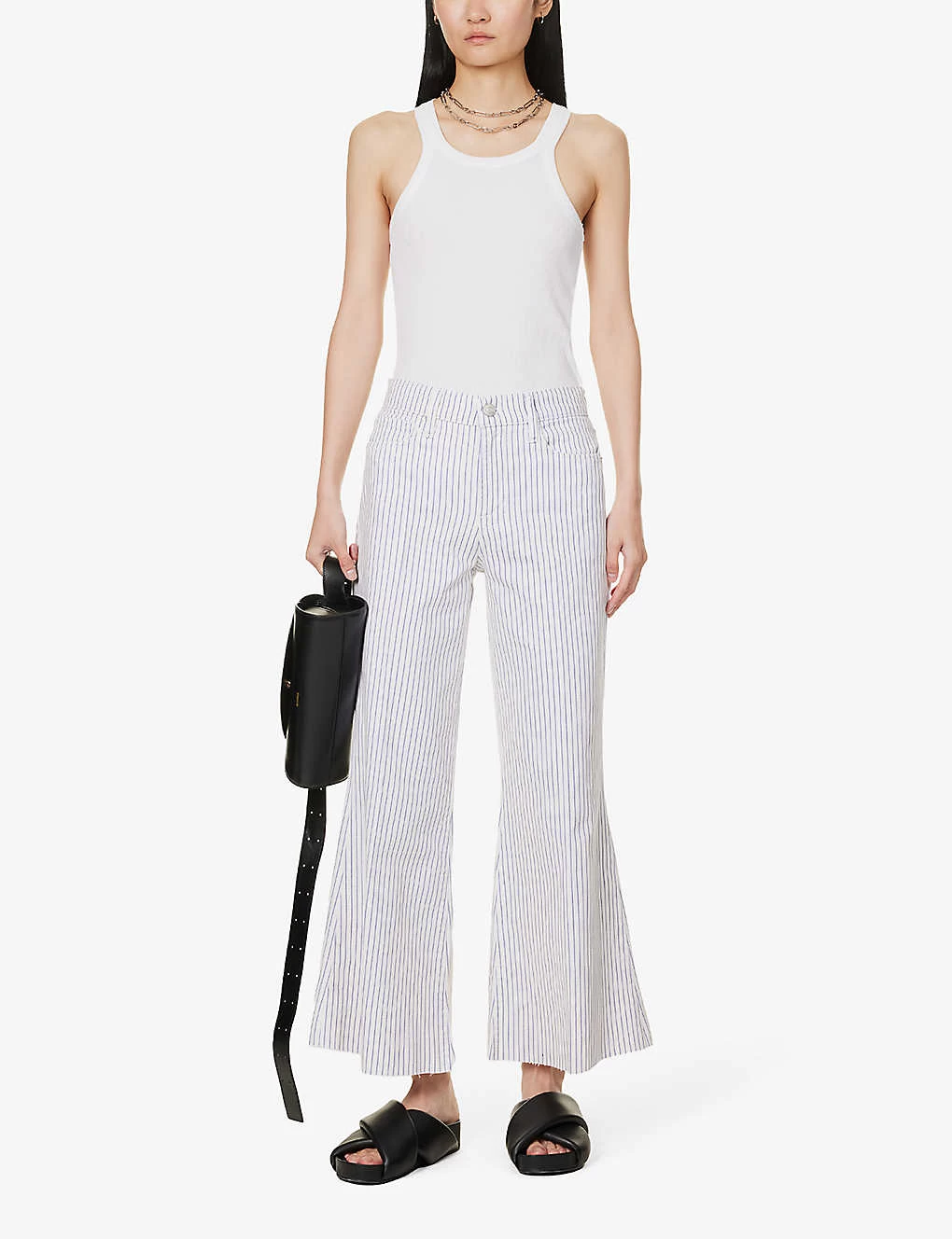 FRAME Le Palazzo Striped Wide-leg Cropped High-rise Recycled Denim-blend Jeans