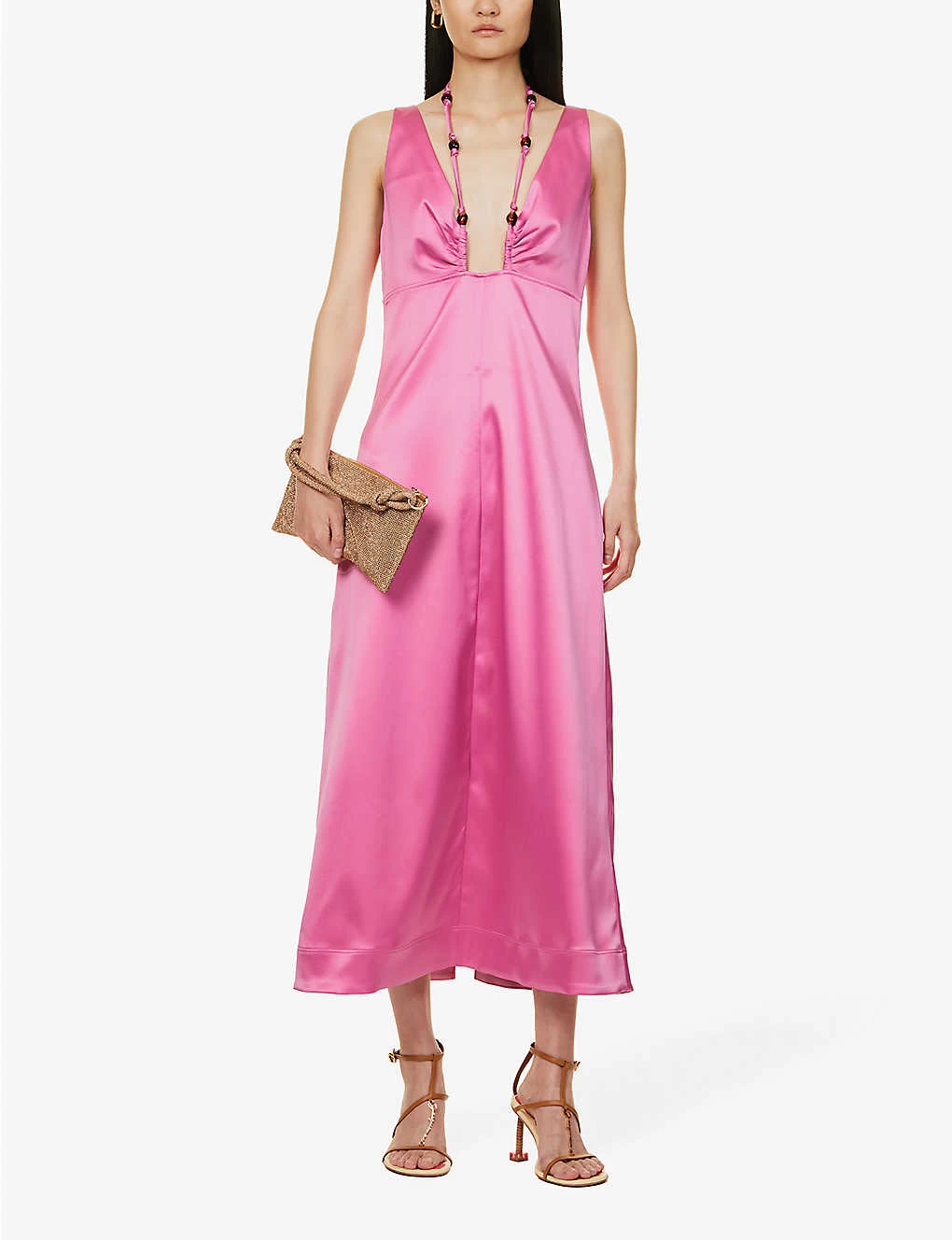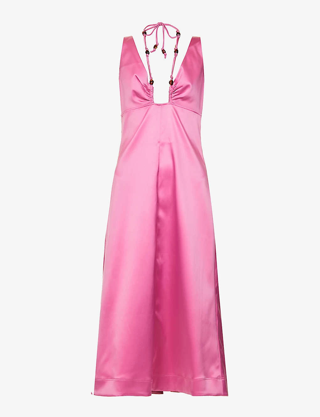 Ganni Double Satin Beaded Stretch Recycled-polyester Midi Dress