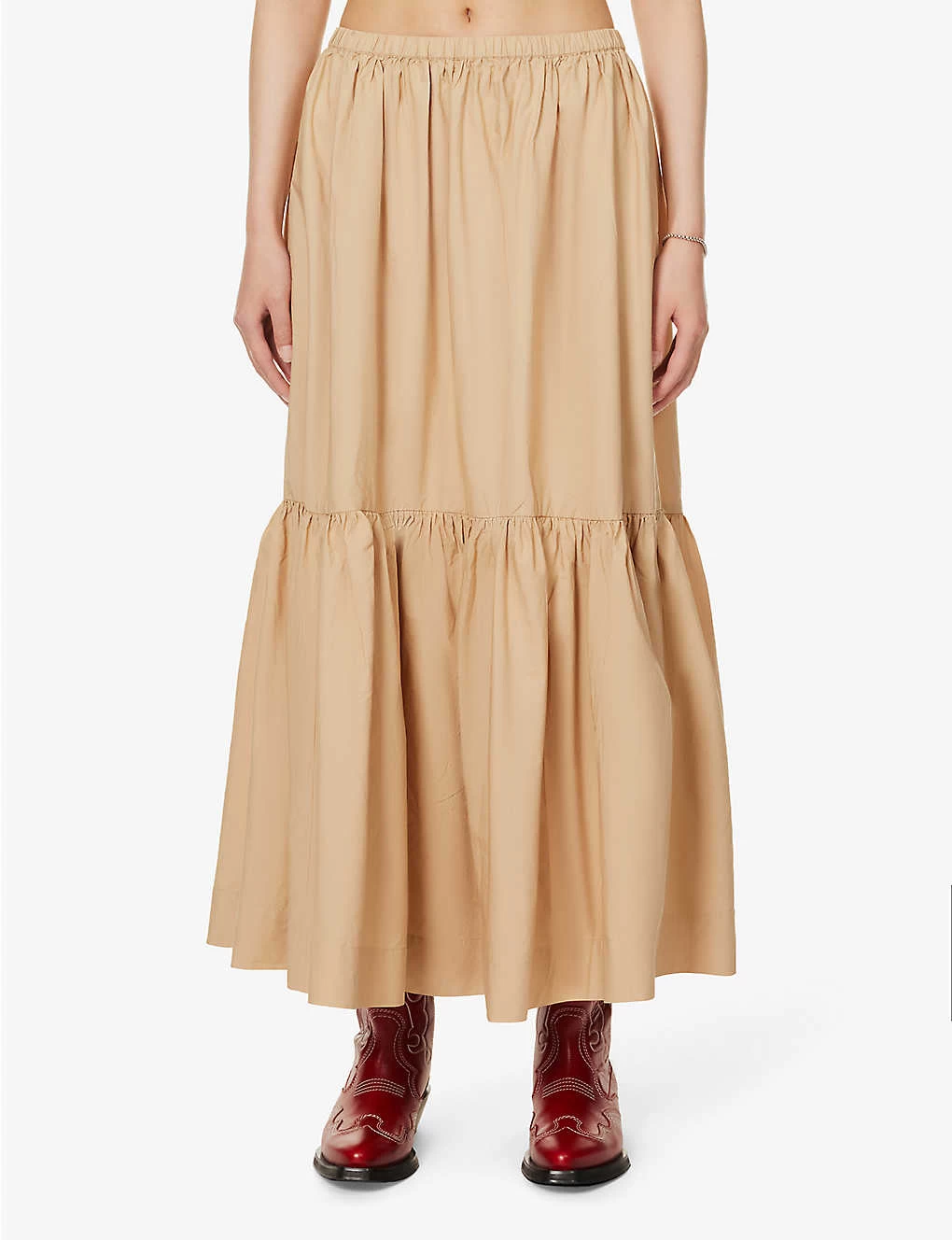 Ganni Tiered-hem Relaxed-fit Organic-cotton Midi Skirt