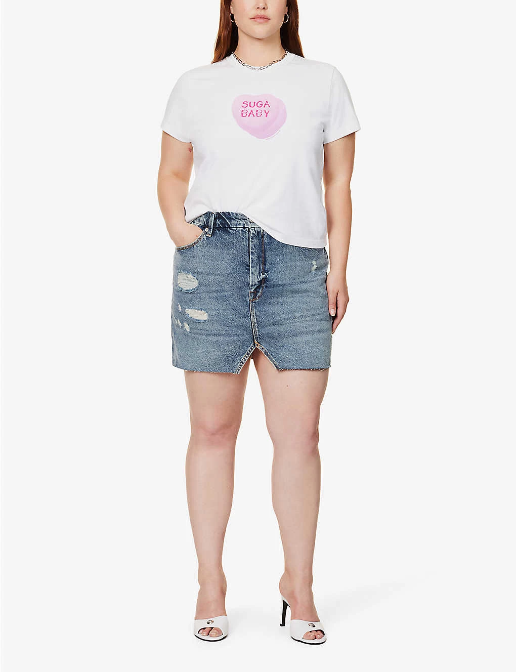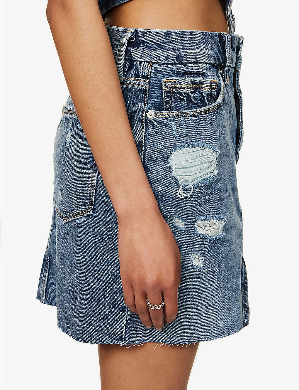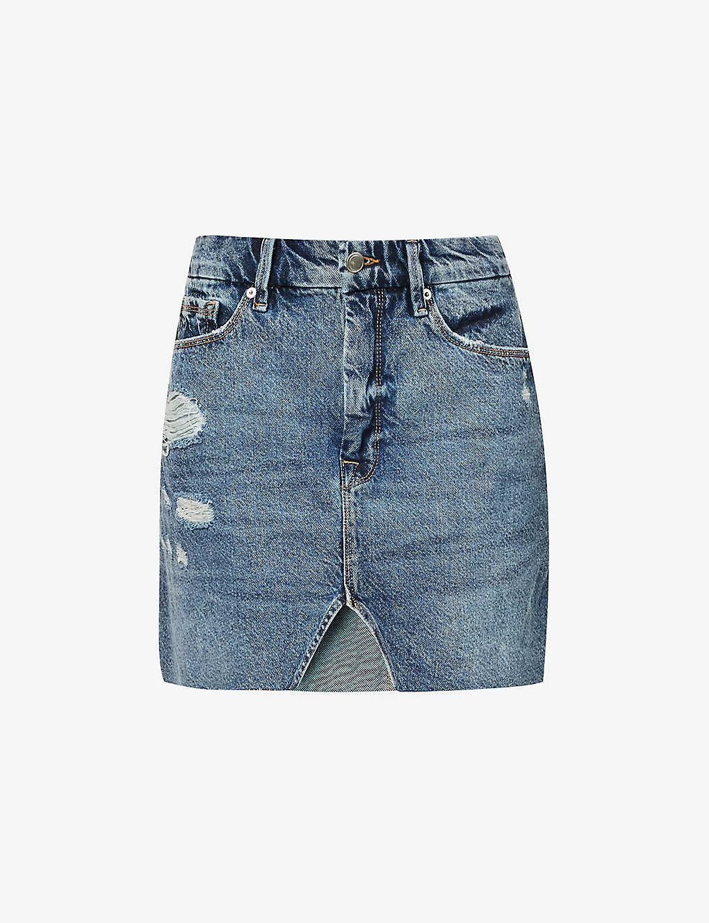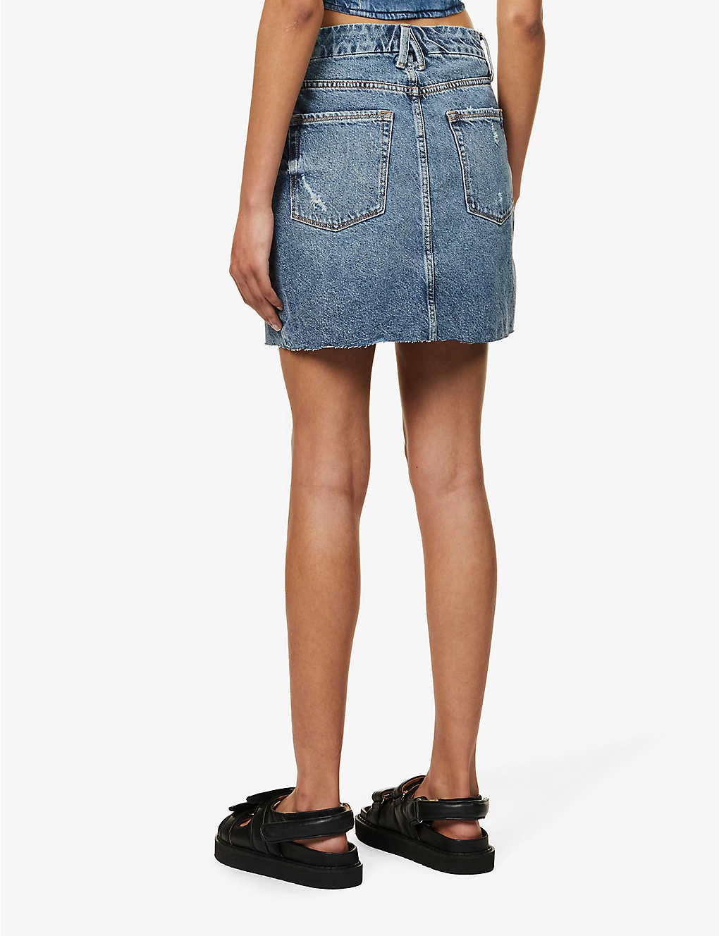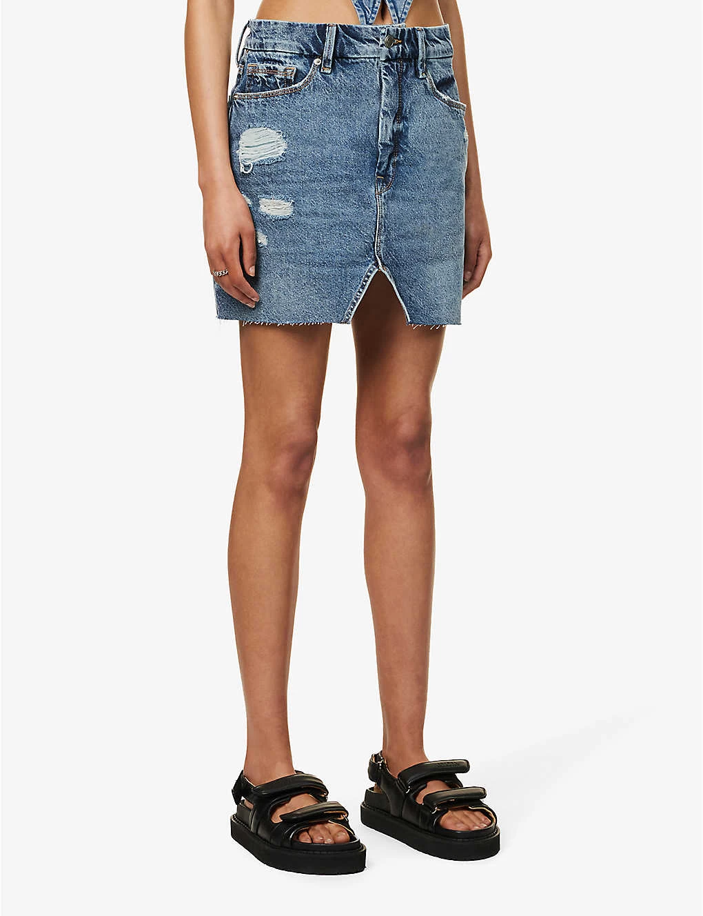 GOOD AMERICAN Distressed Notched-hem Recycled-denim Mini Skirt