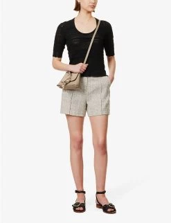- Regular fit, asymmetric neckline, short sleeves, textured rib panels, soft flared hem