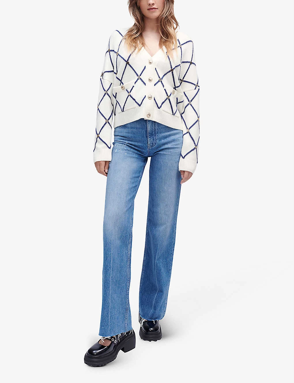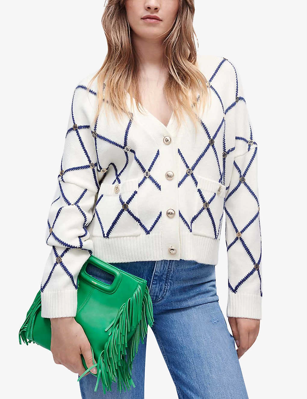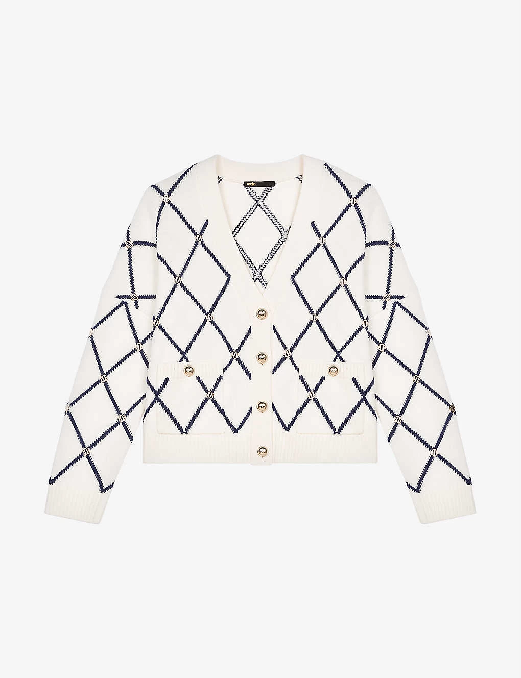 Be the first to review “Maje Moove Diamond-pattern Logo-embellished Knitted Cardigan” Cancel reply
