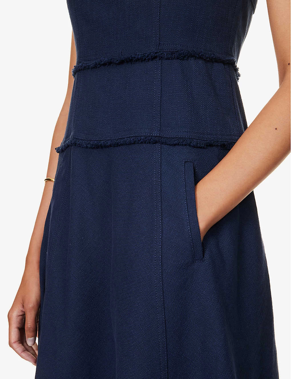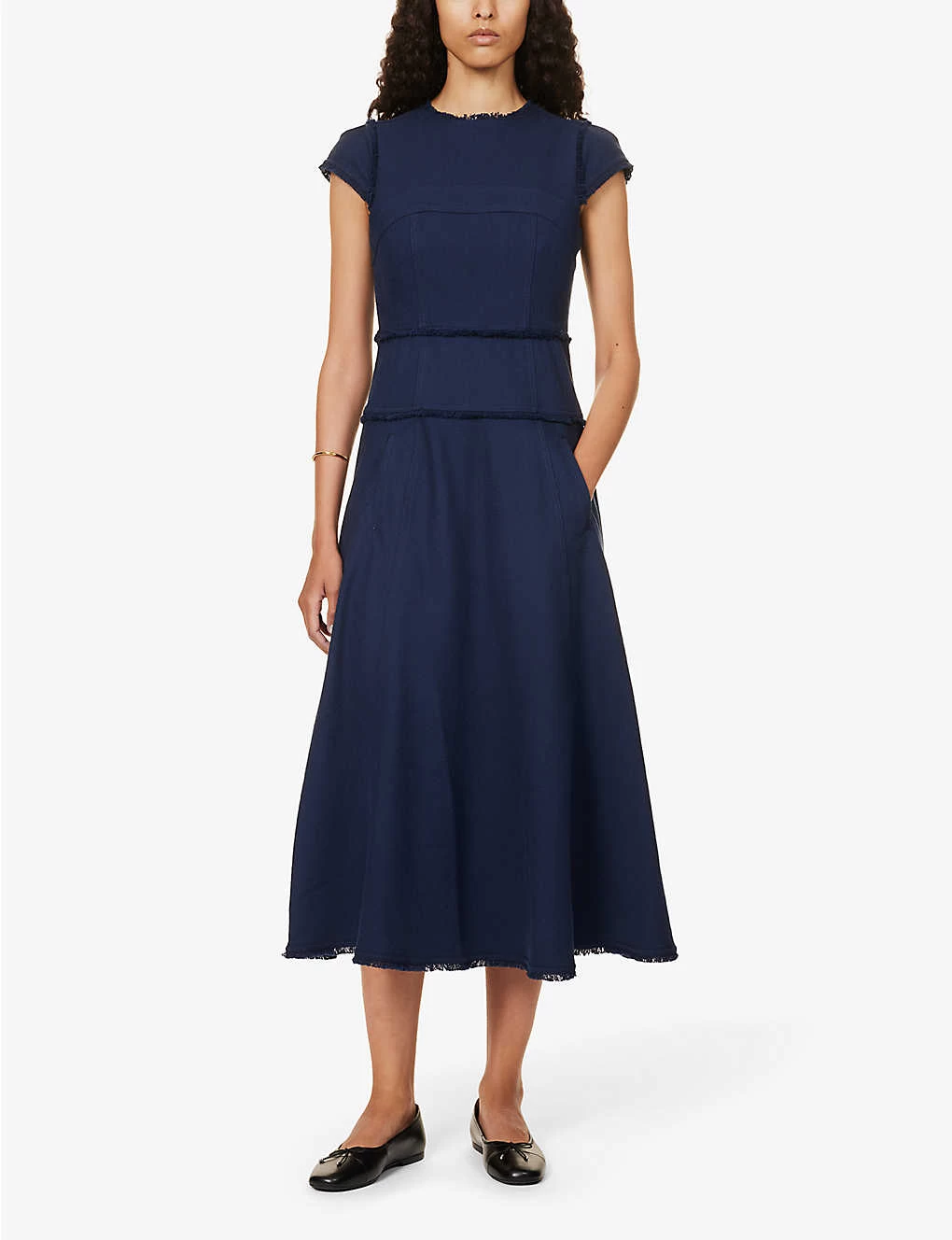 ME AND EM Cap-sleeves Tasselled-trims Cotton-blend Midi Dress