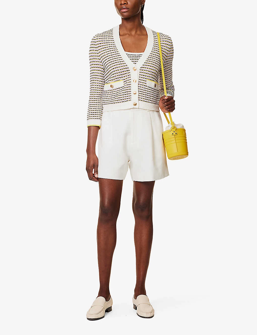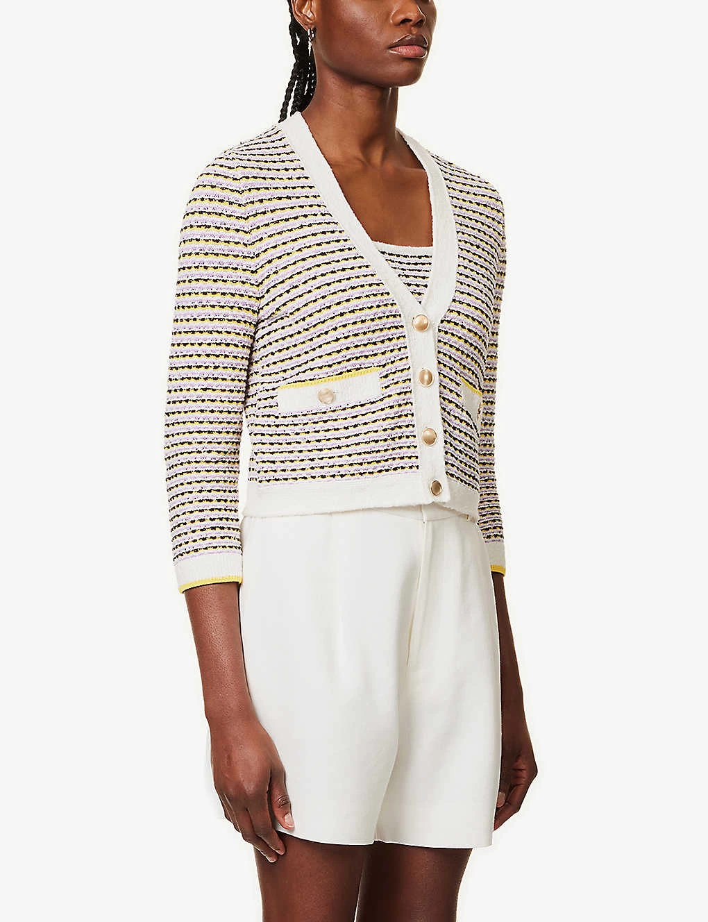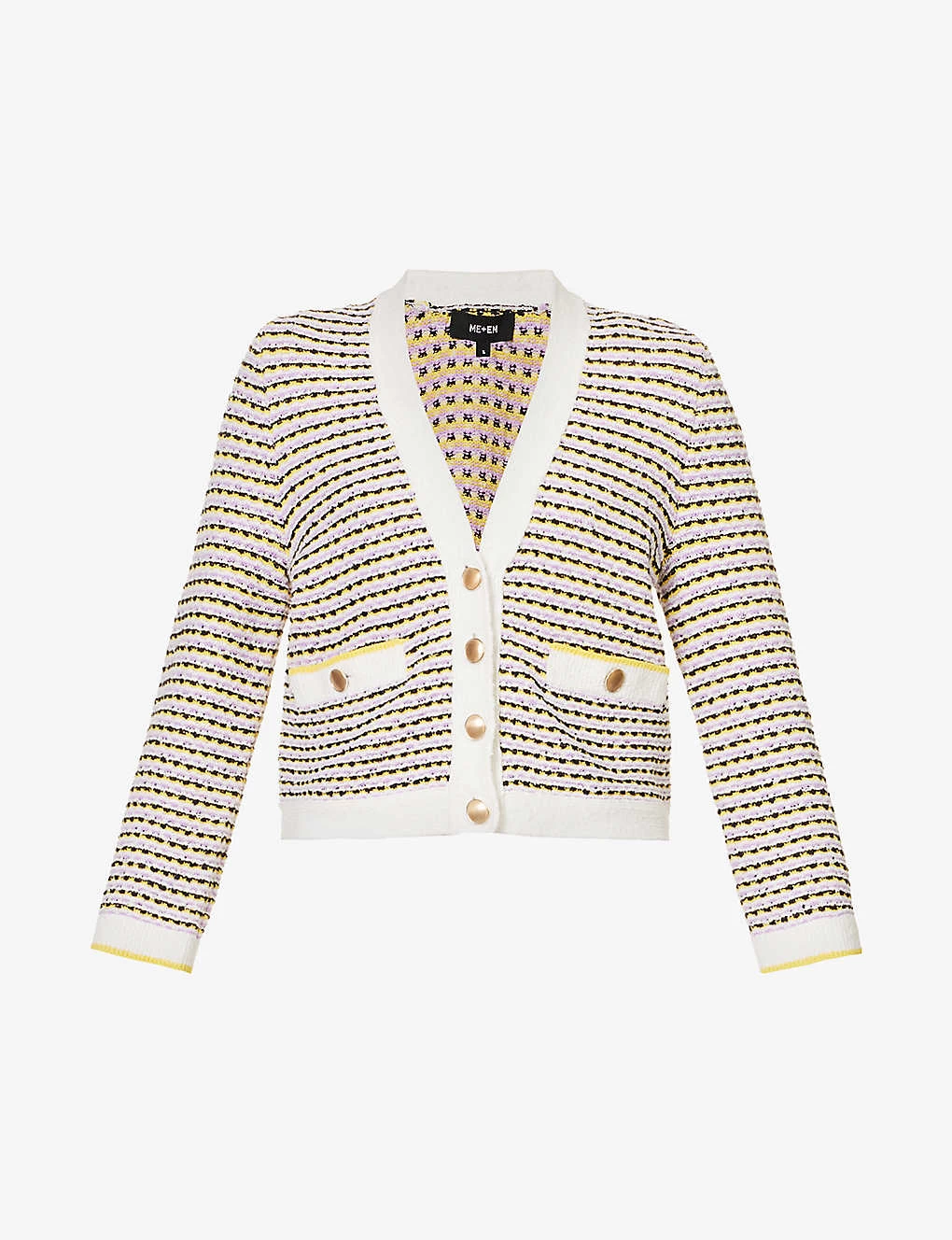 ME AND EM Striped V-neck Cotton-blend Knitted Cardigan