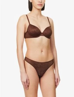 Calvin Klein Sheer Marquisette Floral-embroidered Recycled Nylon-blend Lace Bra
