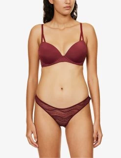 Calvin Klein Striped Semi-sheer Mid-rise Stretch-lace Briefs