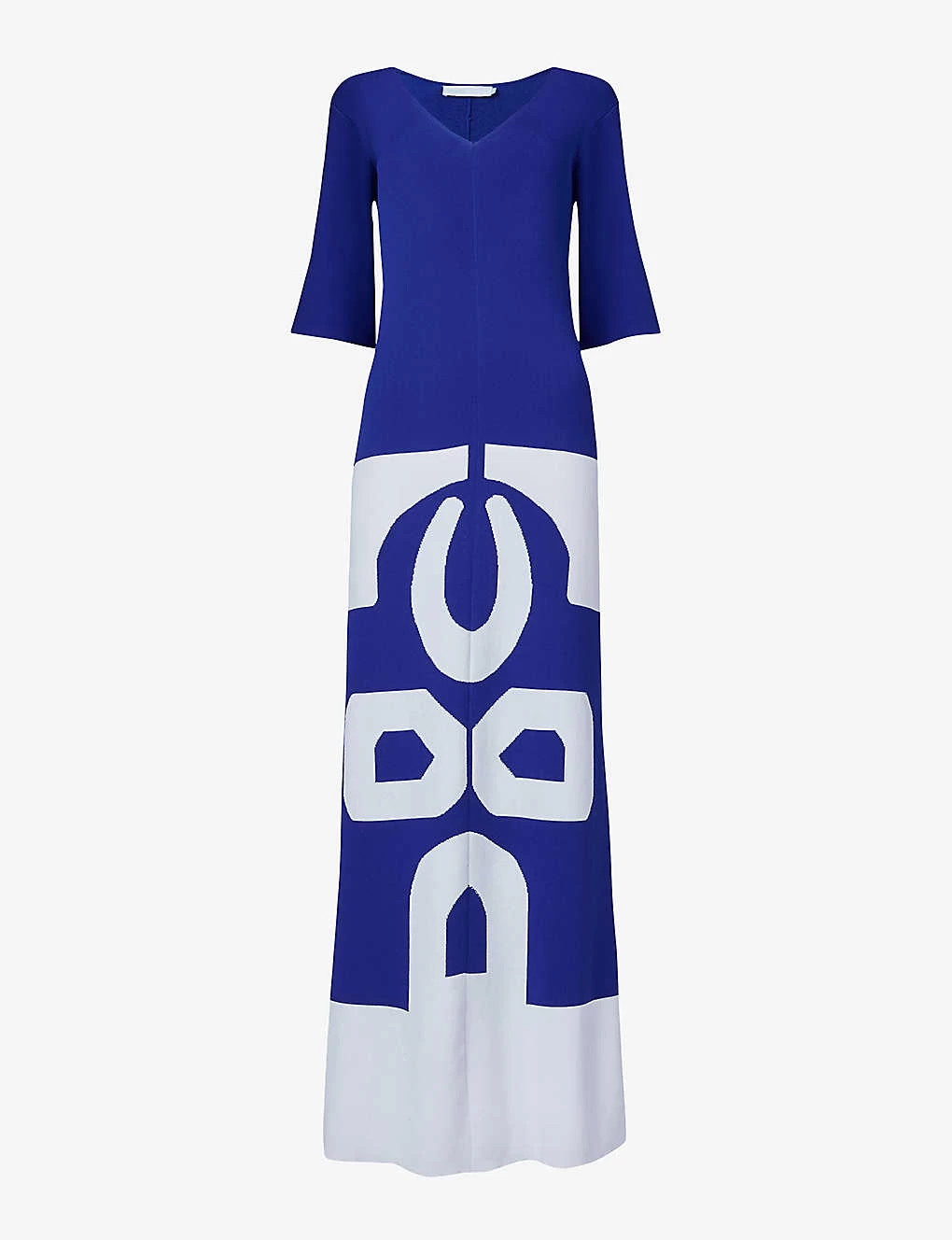 Patterned V-neck Regular-fit Knitted Maxi Dress