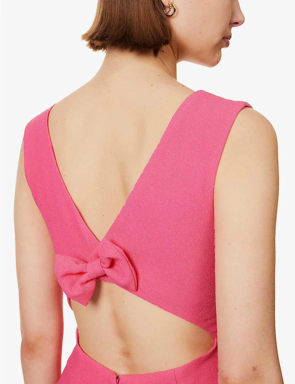 - Regular-fit, scoop neck, shoulder straps, exposed seams, bow at back, open back, fully lined