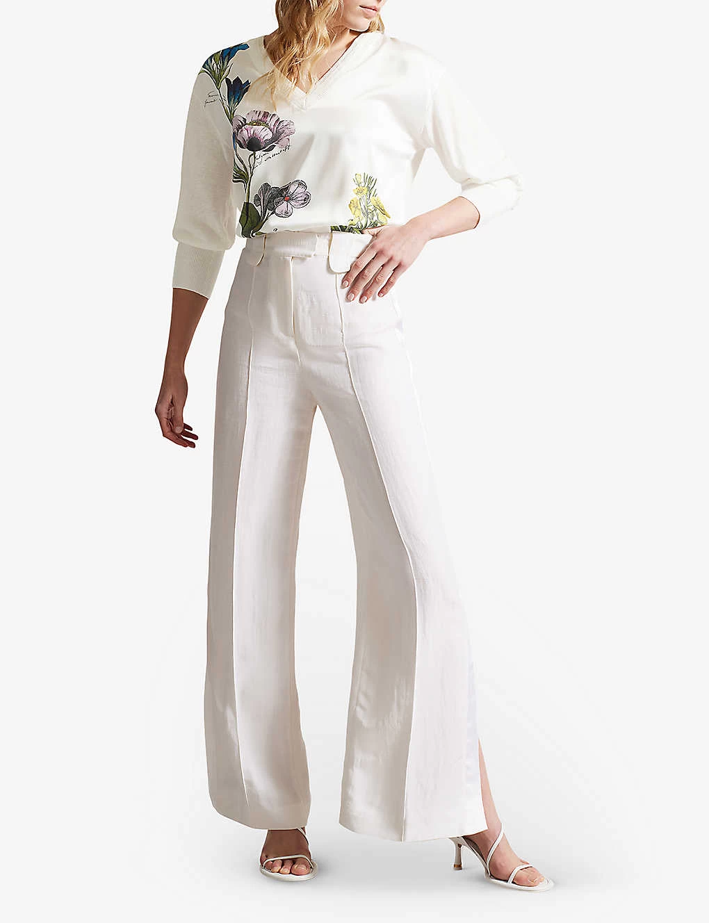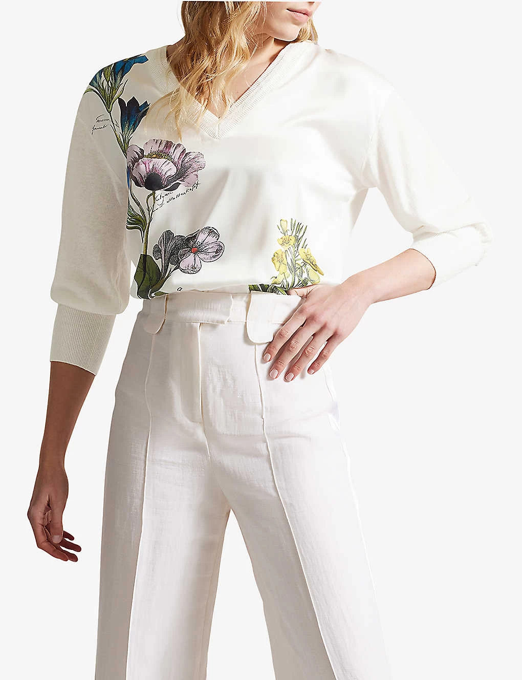Ted Baker Raili V-neck Floral-print Woven Sweater