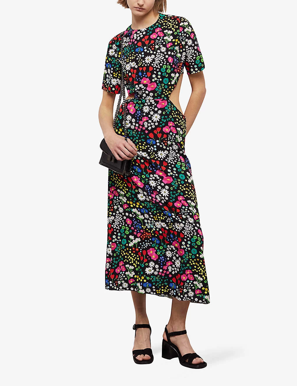 THE KOOPLES Floral-print Cut-out Woven Midi Dress