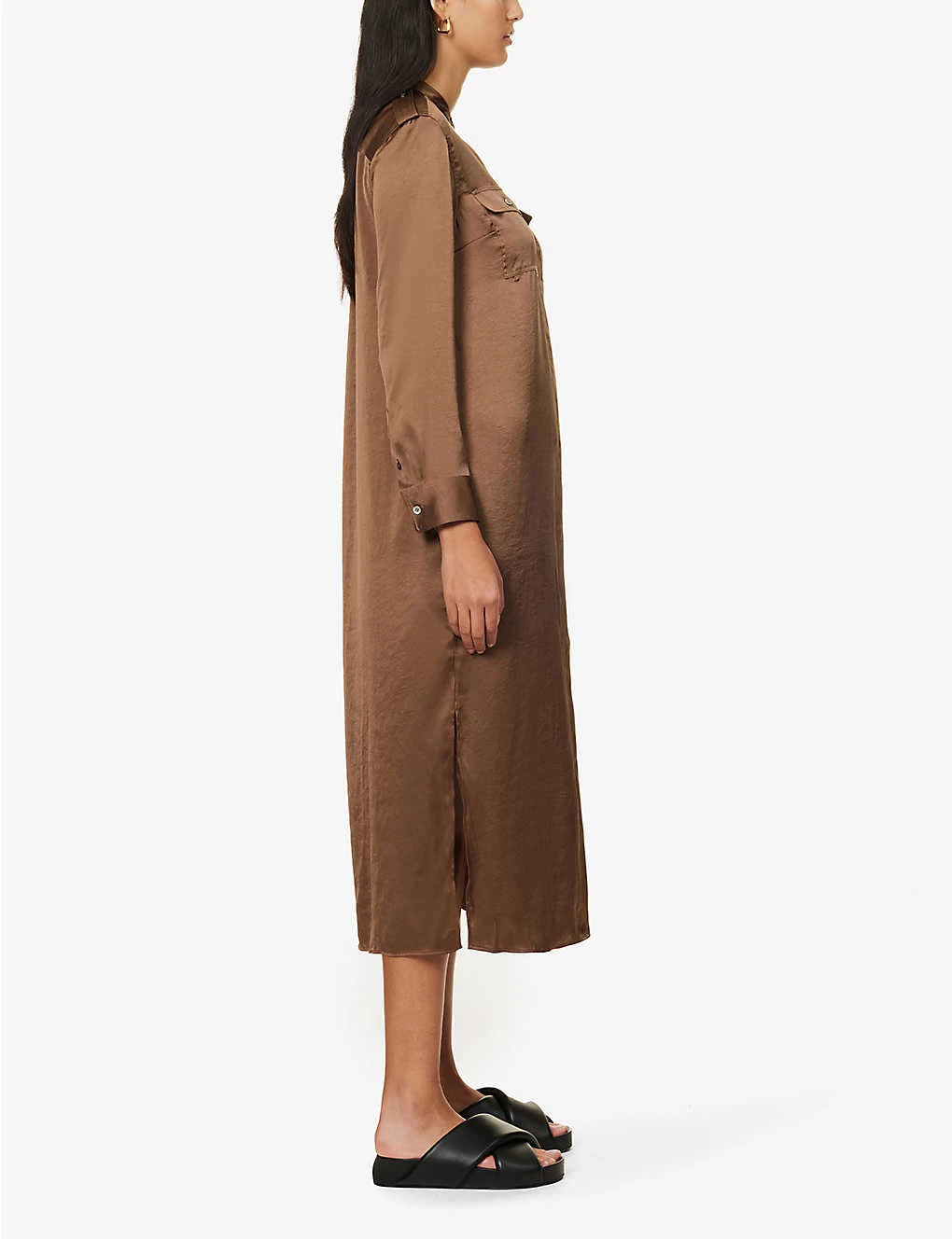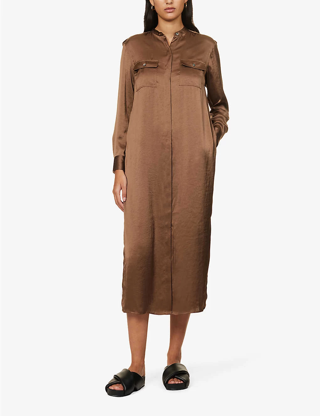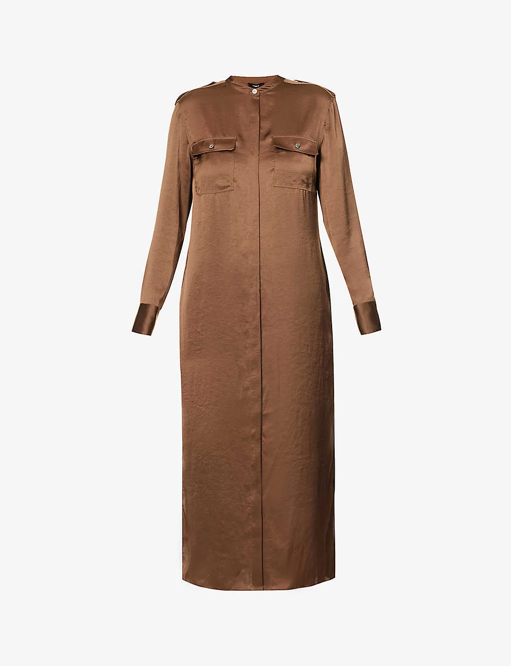 THEORY Split-hem Round-neck Satin Midi Shirt Dress