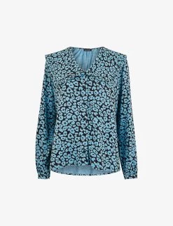 Whistles Fuzzy Leopard-print Oversized-collar Woven Top