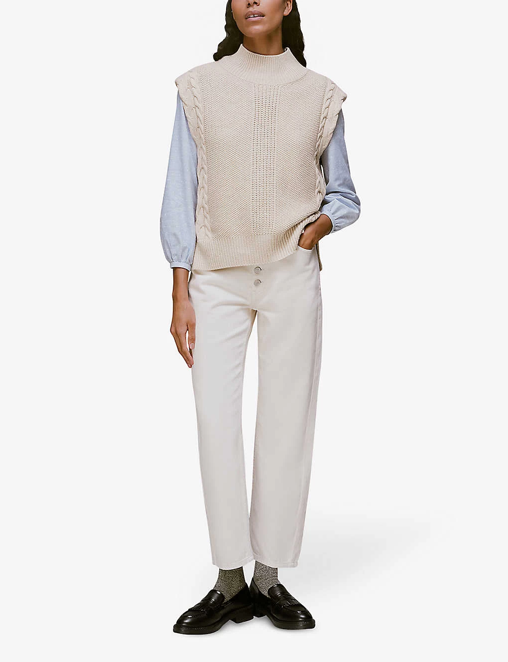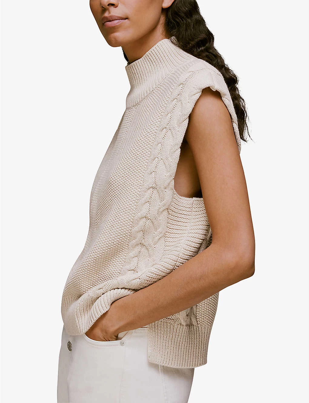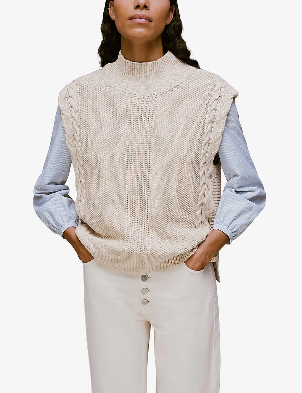 Whistles Sleeveless Cable Cotton And Wool Blend Jumper
