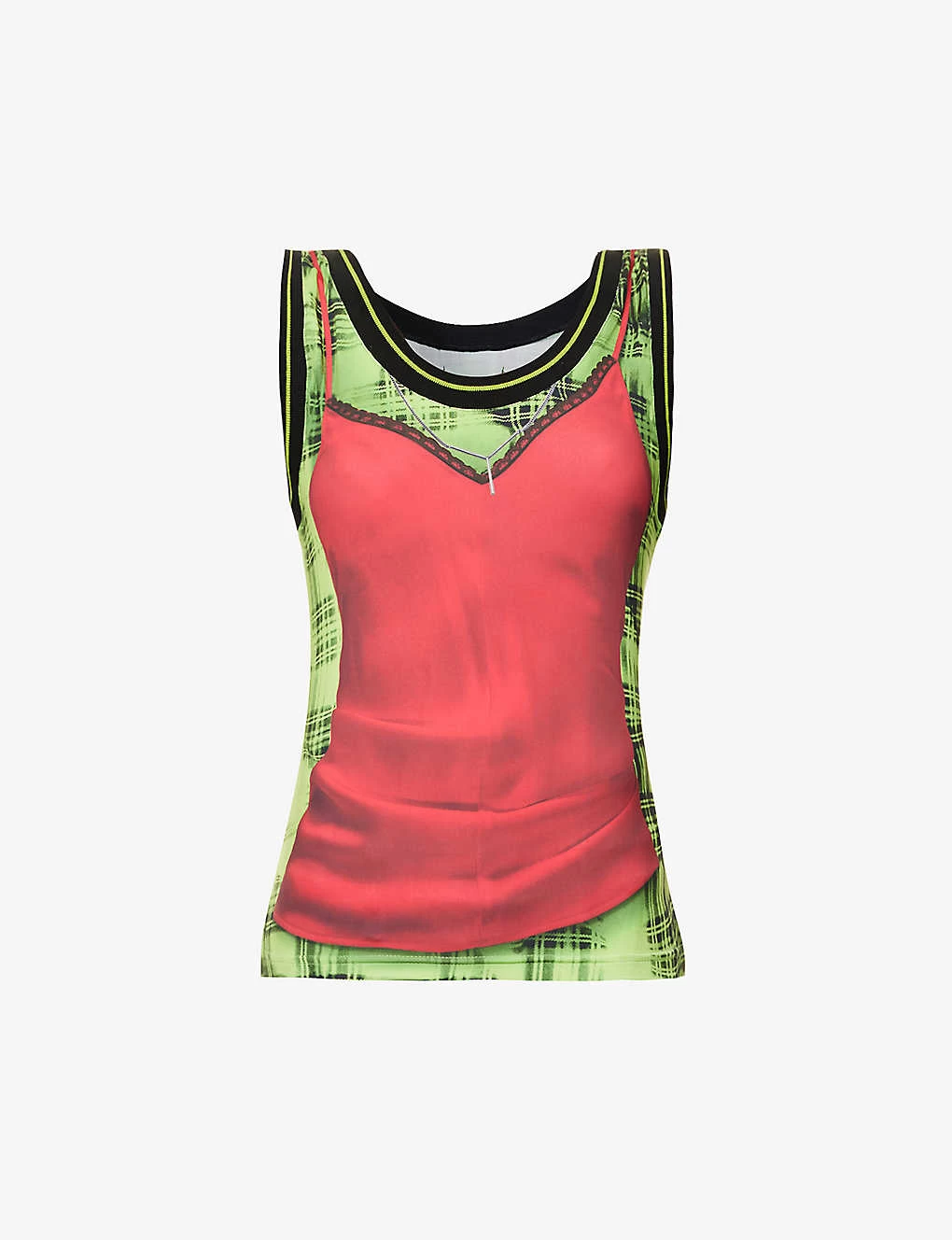 Y/Project X Jean Paul Gaultier Trompe L’Oeil Graphic-print Stretch-woven Top